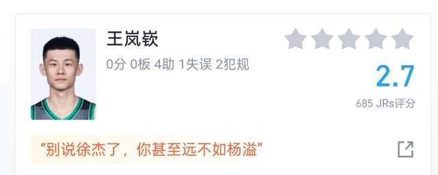 看到這樣的王嵐欽,球迷們也都忍不住了,輸給廣州男籃的比賽,只給他打出2.7分,全隊(duì)墊底。而在球迷的評論中,一句話,戳心。