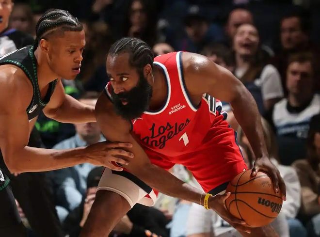 這場(chǎng)比賽堪稱快船整個(gè)賽季的縮影:高開低走,習(xí)慣性崩潰。詹姆斯·哈登拼盡全力,18投10中,砍下34分、5個(gè)籃板和6次助攻,甚至在比賽中一度超越了卡梅隆·安東尼,升至歷史得分榜第10位。