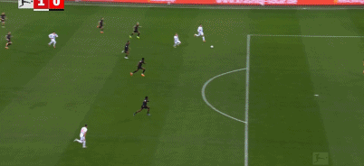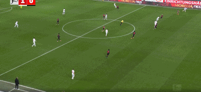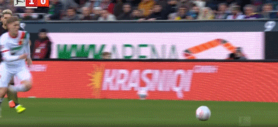 第6分鐘,凱文-施洛特貝克送妙傳,吉安努利斯單刀破門,奧格斯堡1-0