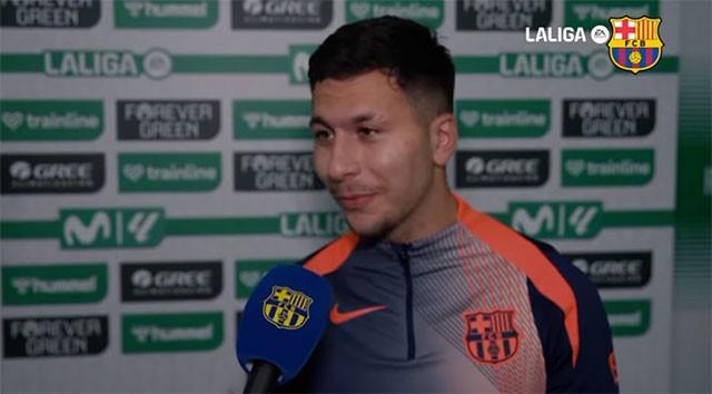 在客場與貝蒂斯的聯(lián)賽中,巴薩小將巴爾德吉獲得首發(fā)機(jī)會并為球隊(duì)攻入一球,幫助巴薩以5-3逆轉(zhuǎn)對手。賽后,他講述了收獲紅藍(lán)生涯第一球的感受。